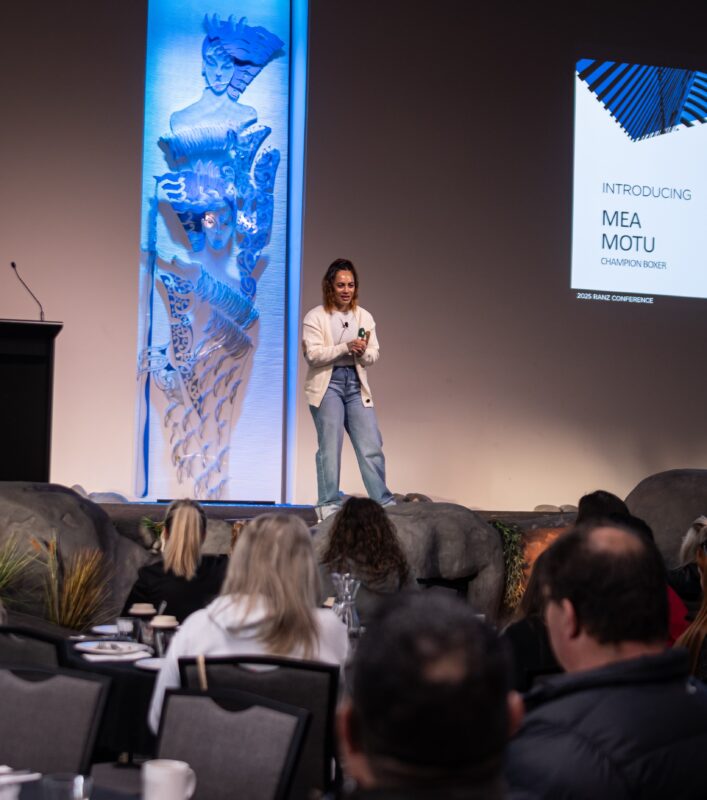 Pictured left: 2025 NZWiR guest speaker, Mea Motu, at the RANZ Conference